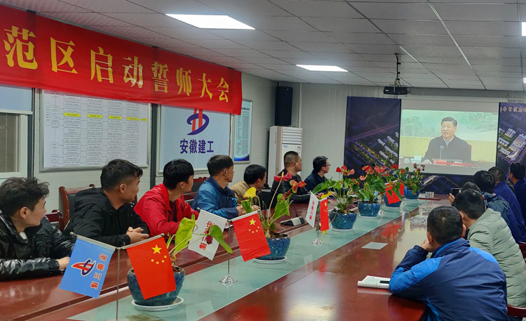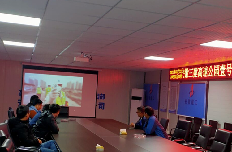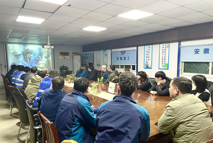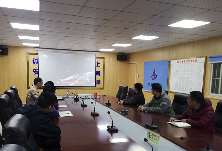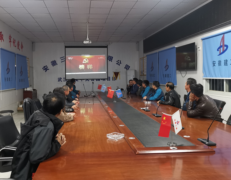 在六安第一中學(xué)擴(kuò)建項(xiàng)目會(huì)議室,當(dāng)天晚上參與項(xiàng)目建設(shè)的四公司、安裝公司、門窗公司聯(lián)合組織項(xiàng)目黨員及管理人員集中觀看專題片。次日一早,裝飾也組織六安一中項(xiàng)目參戰(zhàn)管理人員集中收看專題片,汲取榜樣力量。
