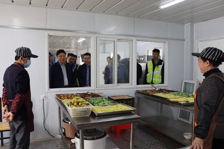 調(diào)研中,何洪春一行深入施工現(xiàn)場、員工宿舍和員工食堂,實地察看了施工進度,與員工親切交談,了解員工工作及后勤保障情況。在施工現(xiàn)場何洪春要求,一定要關愛一線員工的生活,努力創(chuàng)造好的生活環(huán)境,做好后勤保障工作,為施工生產(chǎn)有效推進奠定堅實的基礎保障。