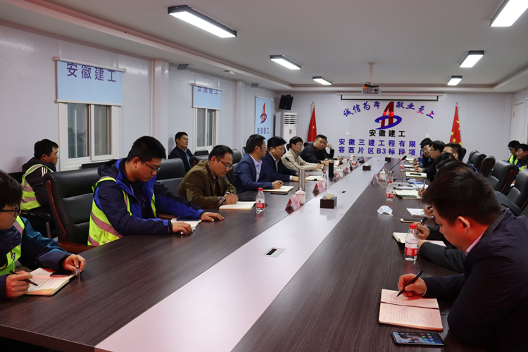 在認真察看項目現(xiàn)場后,何洪春在項目部組織召開了座談會。會上,何洪春對項目取得階段性成果表示肯定,并對施工、安全生產(chǎn)及現(xiàn)場需要解決的重難點問題提出具體意見建議。就項目管理及雄安分公司近期工作,何洪春提出四點要求:一是各參建單位要統(tǒng)一戰(zhàn)線,統(tǒng)一“一盤棋”思想,要快動作、高標準、嚴要求,不打折扣推進工作;二是各工區(qū)、各參戰(zhàn)人員要提高站位、主動作為、加強溝通、勇于承擔、發(fā)揚安徽建工“特別能吃苦、特別能戰(zhàn)斗”企業(yè)作風,克服困難,保障施工;三是項目管理要做好“五好措施”,暨計劃編制好、資源配置好、組織協(xié)調(diào)好、督促檢查好、服務保障好;四是雄安分公司要抓住機遇豎品牌、履約工程抓市場,繼往開來,共創(chuàng)輝煌。