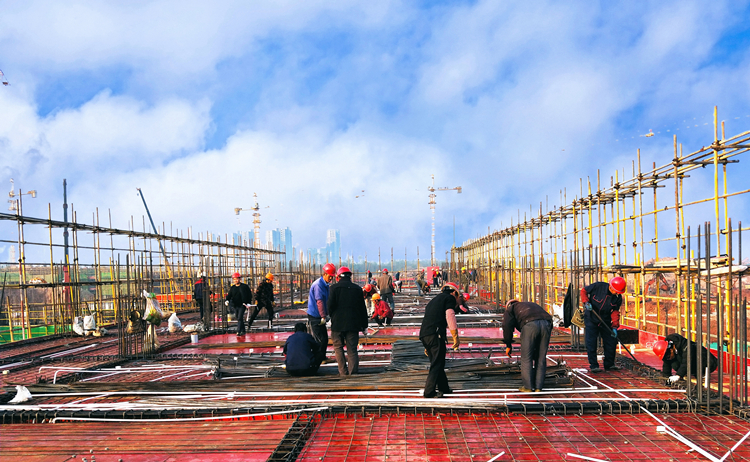 面對20.6萬㎡施工作業(yè)面,公司召開專題項(xiàng)目施工方案討論,決定采取劃分三區(qū)、全面鋪開、平行推進(jìn)的策略,大干快上,促成區(qū)間比學(xué)趕超聯(lián)動效應(yīng)。項(xiàng)目多措并舉,領(lǐng)導(dǎo)班子成立“快速應(yīng)變工作小組”,細(xì)化分解責(zé)任落實(shí),堅(jiān)持問題導(dǎo)向,第一時間排除阻礙工期的主要矛盾點(diǎn)。為合理調(diào)配施工人員,實(shí)行“輪班制”,保證普通節(jié)假日、雙休日休人不休工,確保關(guān)鍵線路、重點(diǎn)部位時刻有人跟蹤,成立“大型設(shè)備協(xié)調(diào)小組”,統(tǒng)籌大型設(shè)備的運(yùn)轉(zhuǎn)工作,保證大型設(shè)備司機(jī)、信號工的輪崗作業(yè)。