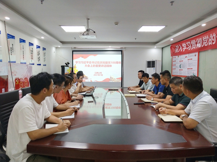 7月13日,江西公司黨支部組織機關全體人員深入學習習近平總書記在慶祝中國共產(chǎn)黨成立100周年大會上的重要講話精神。