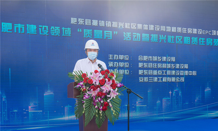 為不斷提高裝配式建筑制造建造水平,大力推進(jìn)質(zhì)量強(qiáng)市建設(shè),9月18日上午,合肥市建設(shè)領(lǐng)域2021年“質(zhì)量月”活動暨振興社區(qū)租賃住房裝配式建筑現(xiàn)場觀摩會在安徽三建肥東振興EPC項目舉辦。合肥市城鄉(xiāng)建設(shè)局總工程師王榮村,肥東縣委常委、副縣長王偉程、安徽三建公司黨委副書記、總經(jīng)理何洪春等出席會議。會議由合肥市綠節(jié)中心主任杜德平主持。