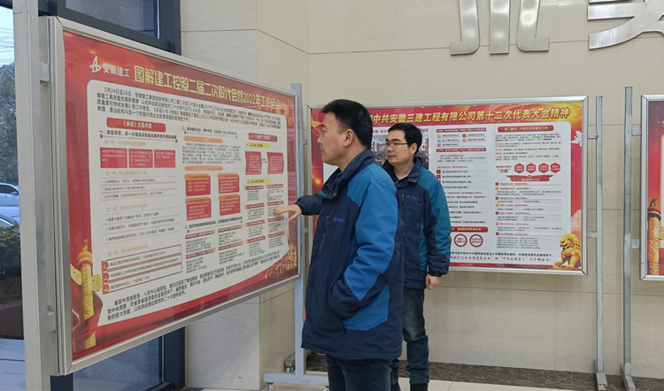 日前,建工控股二屆二次職代會(huì)暨2022年工作會(huì)順利召開。安徽三建公司積極行動(dòng),通過懸掛職代會(huì)精神掛圖、召開學(xué)習(xí)會(huì)、工作部署會(huì)等方式,及時(shí)學(xué)習(xí)宣傳貫徹會(huì)議精神,在公司上下掀起學(xué)習(xí)宣貫熱潮,讓廣大員工全面、準(zhǔn)確地了解集團(tuán)2022年工作思路、奮斗目標(biāo)及總體工作部署,統(tǒng)一思想、提振信心,激勵(lì)廣大干部員工踔厲奮發(fā)、篤行不怠,埋頭苦干、勇毅前行,為奮力譜寫安徽建工高質(zhì)量發(fā)展新篇章,建設(shè)現(xiàn)代化美好安徽作出新的更大貢獻(xiàn),以優(yōu)異成績(jī)迎接黨的二十大勝利召開。