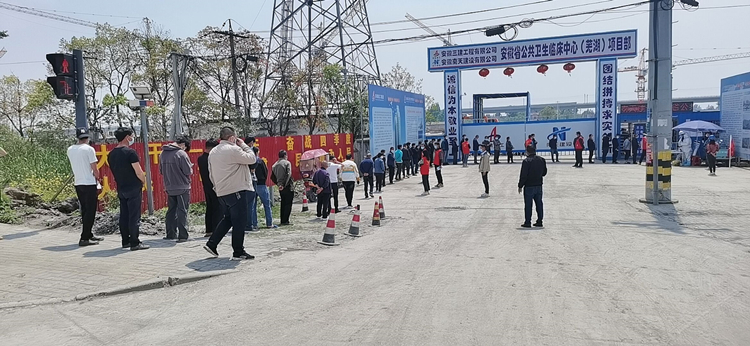 因受蕪湖當(dāng)?shù)匾咔橛绊?,?dāng)?shù)刂鞴懿块T要求安徽省公共衛(wèi)生臨床中心(蕪湖)項(xiàng)目實(shí)行封閉式管理,為保障項(xiàng)目生產(chǎn)施工工作正常運(yùn)行,項(xiàng)目部組織全體人員進(jìn)行為時(shí)七至十四天的每日一次核酸檢測,為保障項(xiàng)目各項(xiàng)工作有序推進(jìn),分公司團(tuán)支部組織號(hào)召該項(xiàng)目青年團(tuán)員志愿者維持現(xiàn)場秩序,協(xié)助進(jìn)行核酸檢測登記、掃碼等工作。