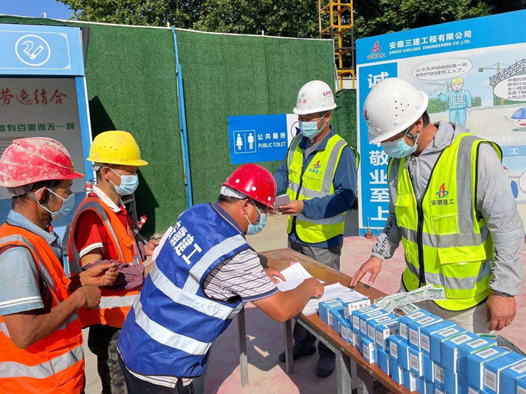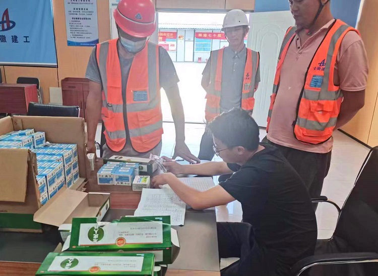 6月16日,門窗公司開展為所在項(xiàng)目門窗安裝班組“夏送清涼”活動(dòng)。 在現(xiàn)場,門窗公司一行人員不僅給班組人員進(jìn)行針對高溫天氣的安全交底、發(fā)放安全知識(shí)手冊,還為班組人員配發(fā)了統(tǒng)一購買的防暑降溫藥品,并積極倡議所有施工作業(yè)的人員都隨身攜帶人丹和風(fēng)油精,以備身體不適時(shí)及時(shí)服用。