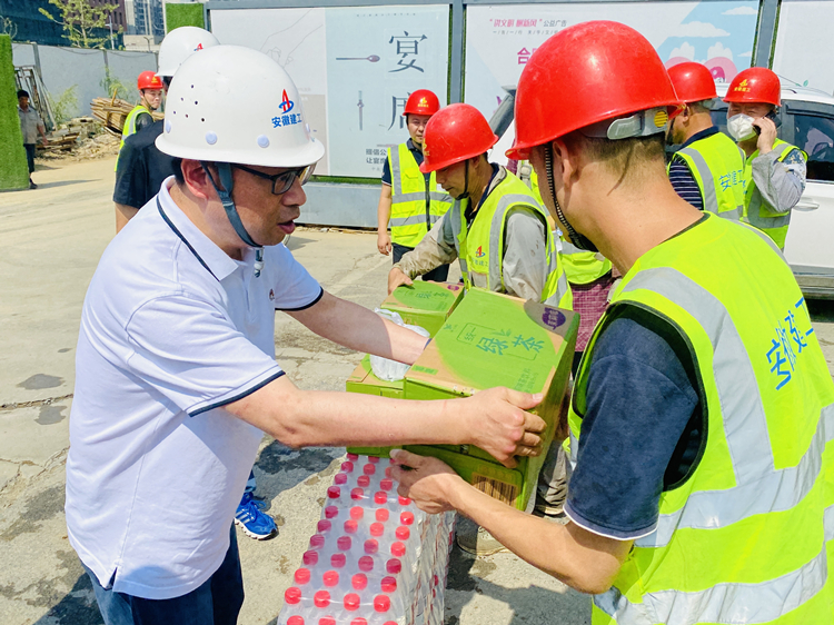 7月12日和7月13日上午,二公司副經(jīng)理侯強(qiáng)、李國先后赴合肥市第一中學(xué)校園品質(zhì)提升工程、新建藝術(shù)禮堂項(xiàng)目施工總承包工程(含安裝公司、裝飾公司職工)、合巢產(chǎn)業(yè)新城郭塘新村、映湖公租房項(xiàng)目施工二標(biāo)段開展夏日“送清涼”活動(dòng),為70多名管理人員、400多名一線工人發(fā)放防暑降溫物品。