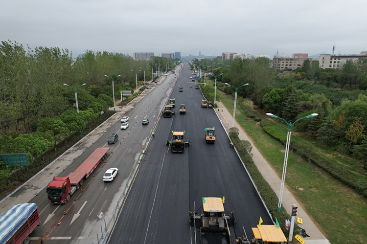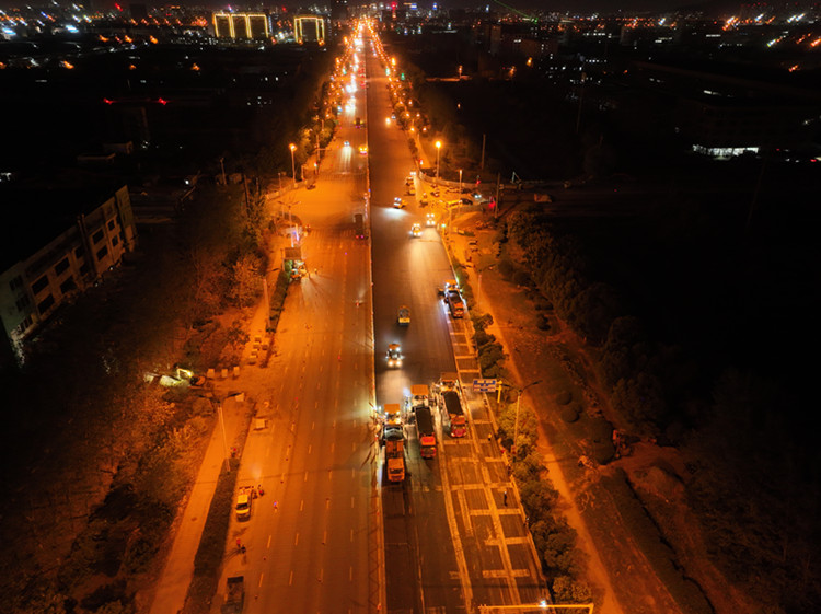 通過高效的調(diào)配資源,科學(xué)的工序安排,完備的服務(wù)保障,項目團隊快速有效地完成了圍擋安裝、路面銑刨、路基病害處理、側(cè)石安裝、井蓋提升、防裂貼施工、瀝青油撒布、攤鋪瀝青、標(biāo)線劃定等在內(nèi)的一道道施工工序。最終實現(xiàn)了東半幅施工任務(wù)的提前完成。