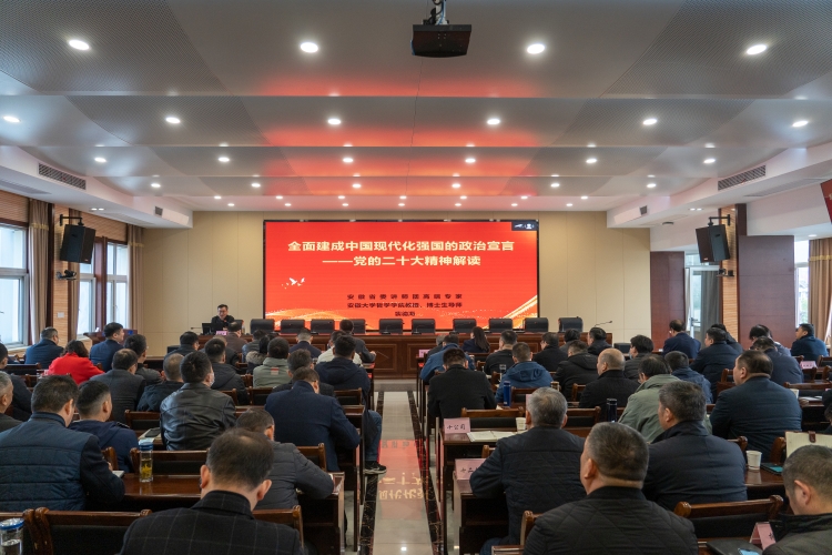 為切實(shí)加強(qiáng)公司廣大黨員干部職工的理論學(xué)習(xí),提高政治素養(yǎng),3月1日上午,公司在五樓會(huì)議室舉辦學(xué)習(xí)貫徹黨的二十大精神集中培訓(xùn)班暨中層管理人員培訓(xùn),邀請(qǐng)安徽省委講師團(tuán)高端專家、安徽大學(xué)哲學(xué)學(xué)院教授、博士生導(dǎo)師裴德海專題講授黨的二十大精神,培訓(xùn)采取線上線下相結(jié)合的方式,等共計(jì)1000余人參加此次培訓(xùn)。