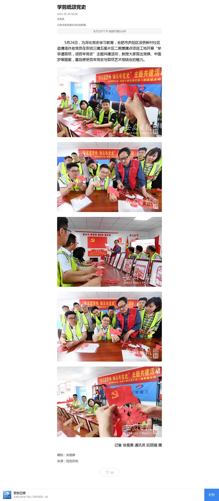 安徽日報(bào)、合肥晚報(bào)、安徽日報(bào)公眾號——學(xué)剪紙頌黨史