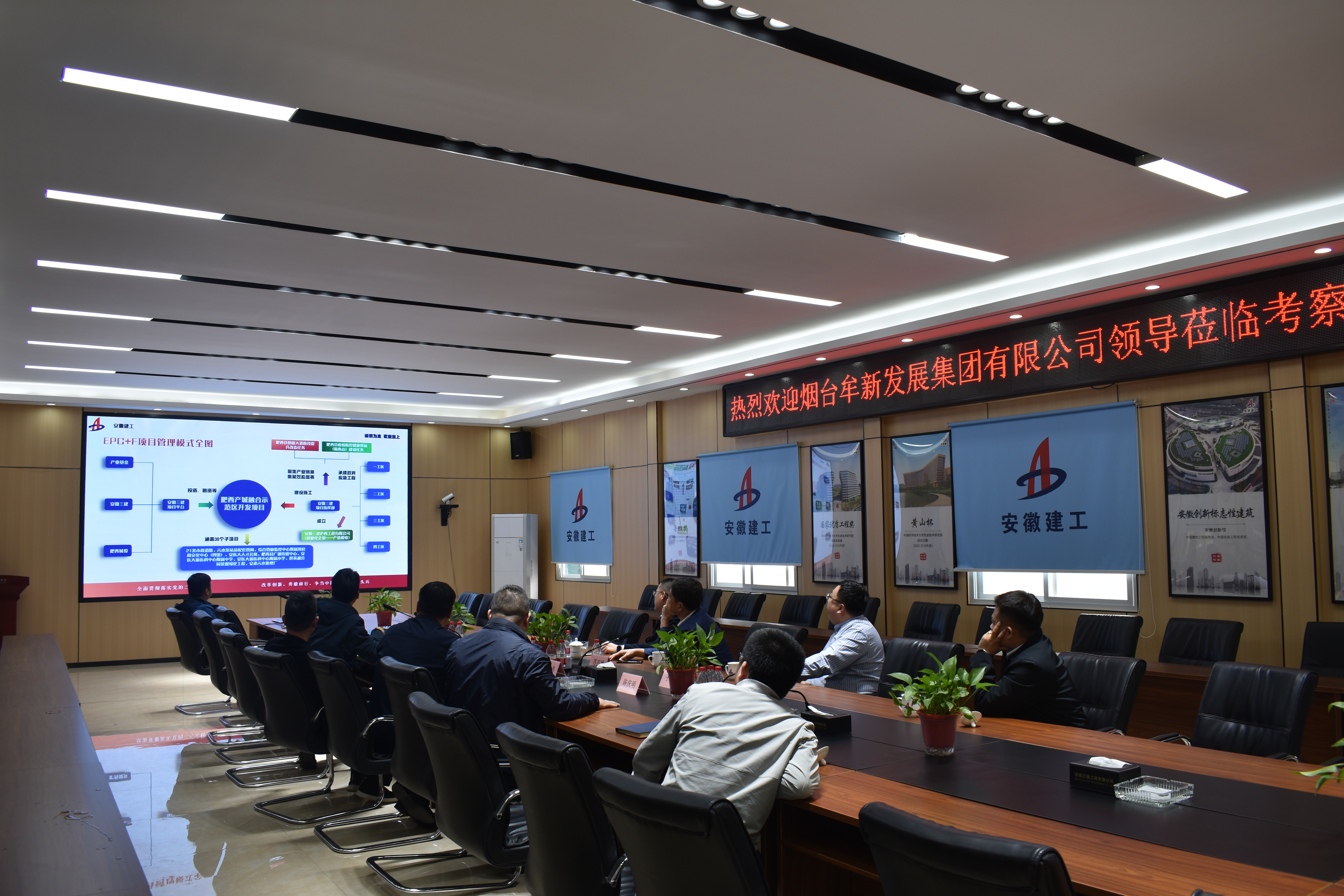 何洪春對(duì)蘇在德一行的到訪表示熱烈歡迎,并向蘇在德一行介紹了安徽三建的業(yè)務(wù)板塊、企業(yè)文化、產(chǎn)業(yè)布局、科技創(chuàng)新等基本情況。