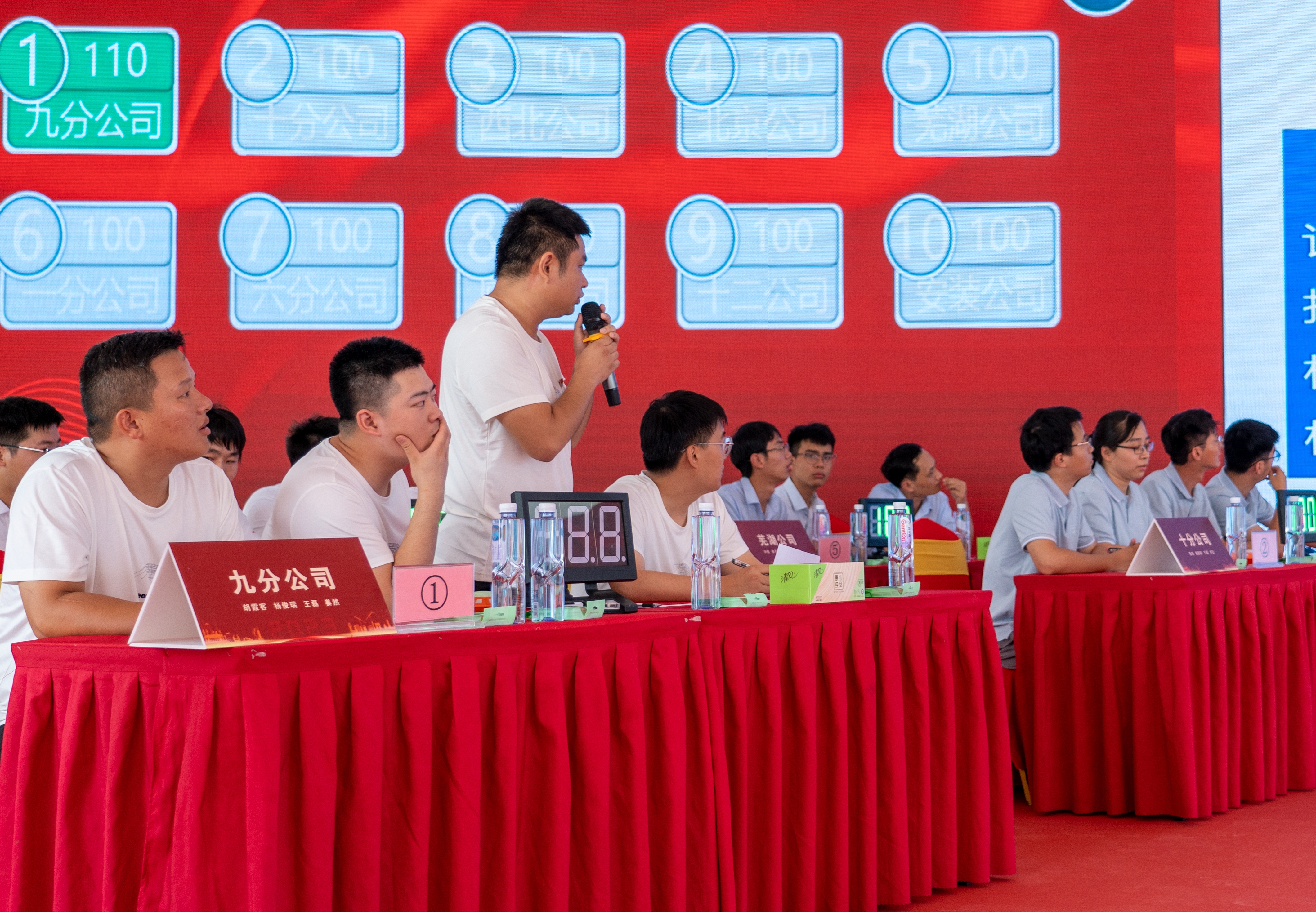 經(jīng)過緊張激烈的比拼,最終七公司代表隊(duì)榮獲一等獎,十二公司、蕪湖分公司代表隊(duì)榮獲二等獎,五公司、十公司、市政公司代表隊(duì)榮獲三等獎。一公司、六公司、八公司、裝飾公司、蚌埠分公司、廈門分公司代表隊(duì)榮獲優(yōu)勝組織獎,十一公司代表隊(duì)榮獲突出貢獻(xiàn)獎。