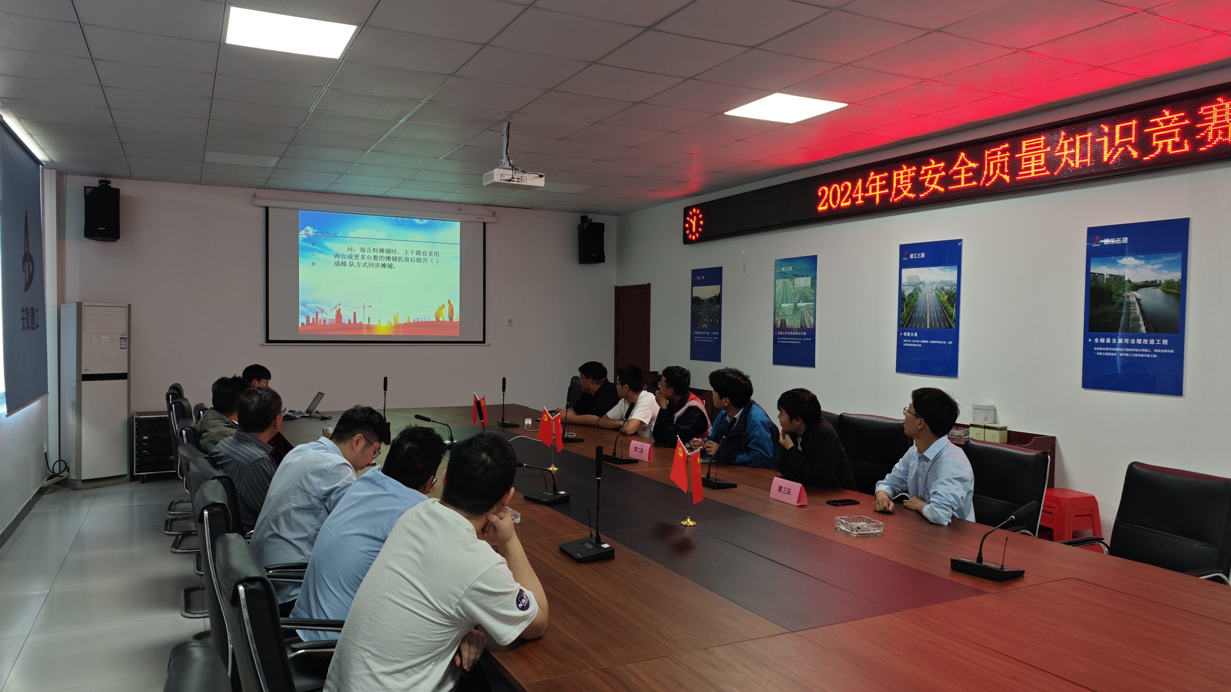 近日,為積極響應(yīng)公司安全質(zhì)量比武大賽的活動(dòng)要求,進(jìn)一步加強(qiáng)員工的安全質(zhì)量意識(shí),提升專業(yè)技能水平,水利交通公司滁州高新區(qū)城東片區(qū)產(chǎn)業(yè)升級(jí)示范園一期、二期建設(shè)項(xiàng)目組織開展了安全質(zhì)量知識(shí)競(jìng)賽及測(cè)量比武大賽活動(dòng)。