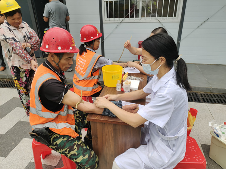 炎炎夏日,大圩金葡萄家園二期項(xiàng)目工地上“熱火朝天”,施工一線的建設(shè)者們堅(jiān)守崗位,正緊鑼密鼓地?fù)屪スて?,確保實(shí)現(xiàn)年底竣工驗(yàn)收目標(biāo)。為扎實(shí)推進(jìn)“我為群眾辦實(shí)事”實(shí)踐活動(dòng),有效保障工人身體健康,15日上午,大圩金葡萄家園二期項(xiàng)目組織開(kāi)展為全體參建工友免費(fèi)健康體檢活動(dòng),為高溫下的勞動(dòng)者健康護(hù)航。