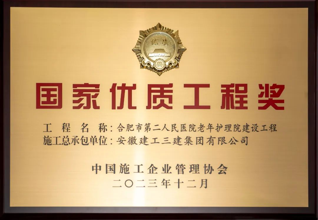 12月24日,2022-2023年度第二批國家優(yōu)質(zhì)工程獎獲獎名單揭曉。安徽建工三建集團(tuán)承建的合肥市第二人民醫(yī)院老年護(hù)理院建設(shè)工程榮獲“國家優(yōu)質(zhì)工程獎”。至此,公司已累計獲得4項“國家優(yōu)質(zhì)工程獎”。