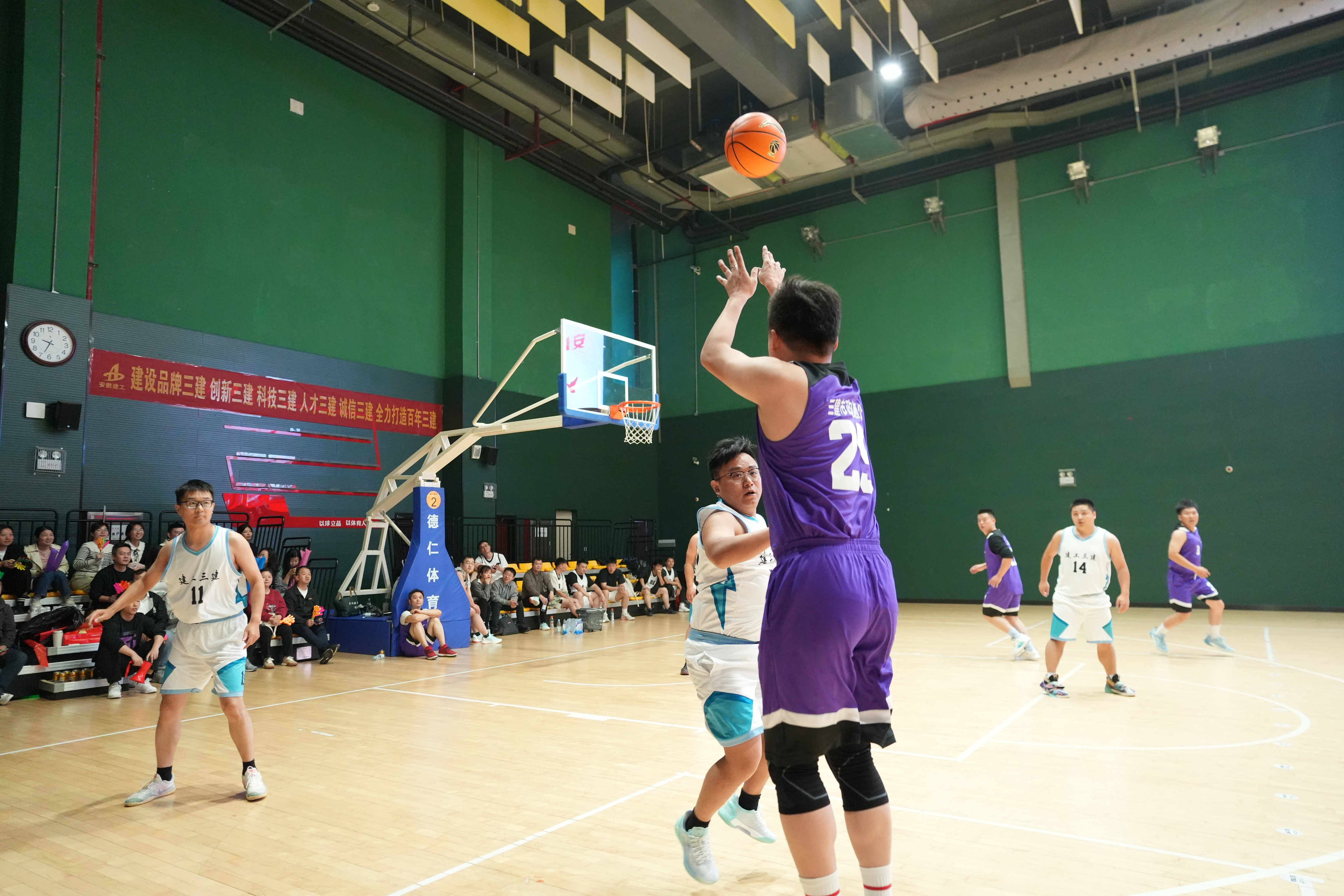 11月13日至15日,安徽建工三建“青春‘籃’不住,奮進正當時”第十二屆“三建杯”職工籃球賽在合肥市工人文化宮成功舉辦。自開賽以來,由各分子公司及公司機關組成的14支代表隊、210余名運動員奮勇拼搏、爭創(chuàng)佳績,呈現(xiàn)了一場又一場精彩紛呈的籃球盛宴。建工控股工會副主席、信訪辦主任邢應梅出席開幕式并宣布開賽,建工股份黨委委員、副總經理、建工三建黨委書記、董事長何洪春出席活動并致開幕辭。公司領導班子成員、各分子公司領隊及職工代表參加開幕式并觀看賽事。