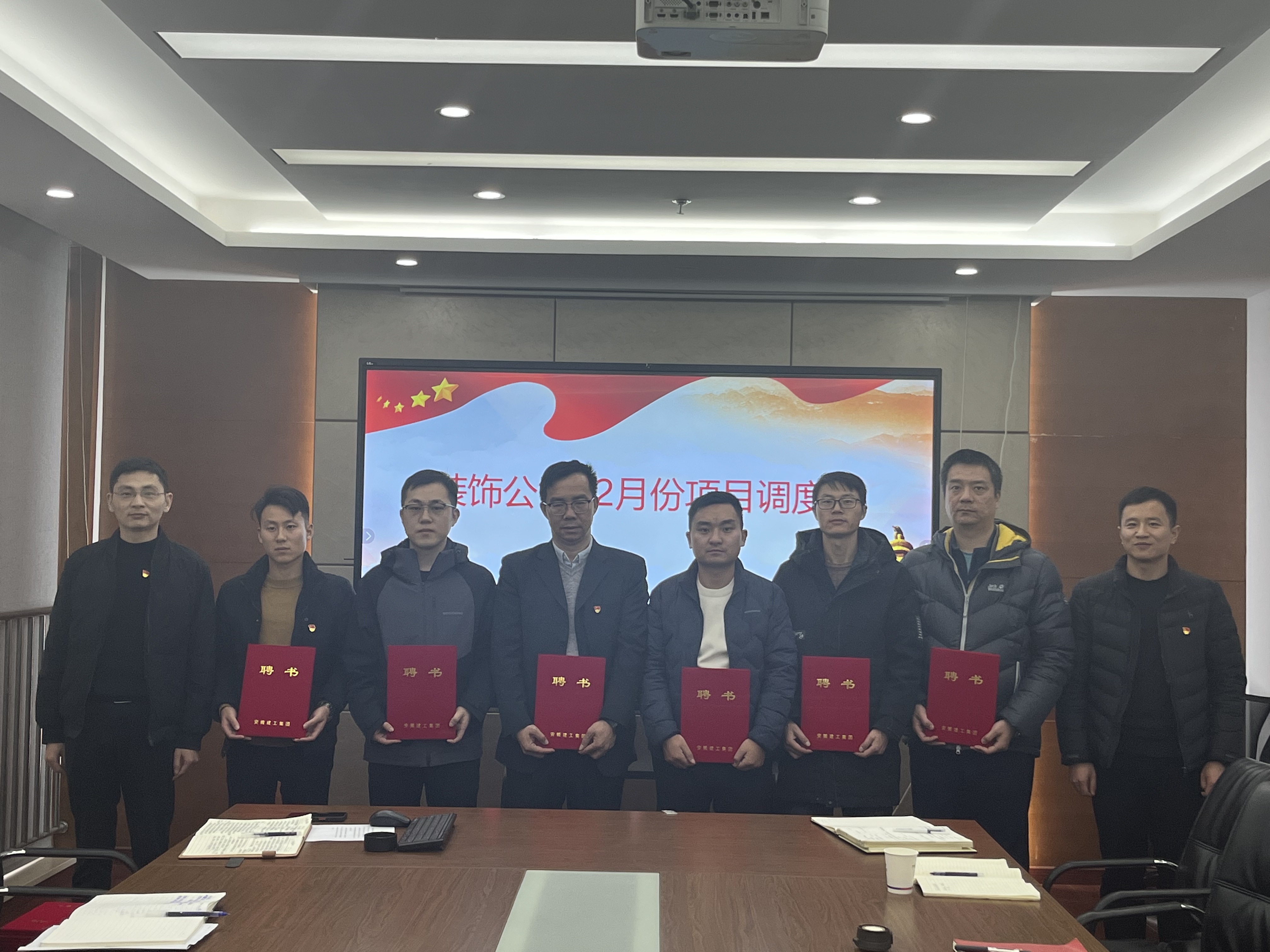 12月23日下午,裝飾公司舉辦項目經(jīng)理聘書頒發(fā)及項目經(jīng)理宣誓活動。裝飾公司班子成員、相關(guān)科室負責人、項目經(jīng)理近20人參加。