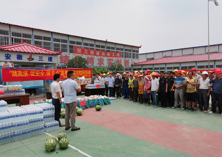 入夏以來,持續(xù)高溫,七公司寶灣三期項目的一線工人,戰(zhàn)高溫,斗酷暑,始終堅守在施工生產(chǎn)一線。為確保項目工人平安、清涼度過酷暑盛夏,7月11日,合肥寶灣國際物流中心有限公司工程物流黨支部、工程管理部聯(lián)同項目部開展“戰(zhàn)高溫、促安全、保節(jié)點”夏季送清涼慰問一線農(nóng)民工活動。