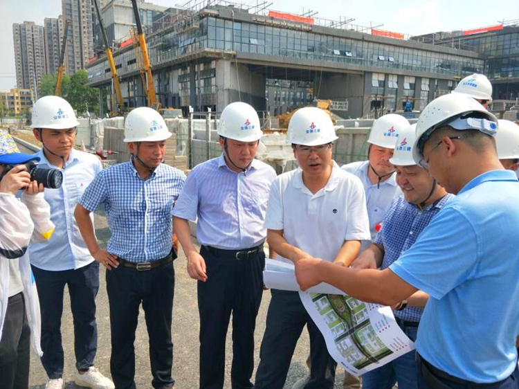 葛銳一行、冒著高溫,深入施工現(xiàn)場,先后參觀了1#樓展示廳、2#科研樓等施工現(xiàn)場,對施工現(xiàn)場安全生產(chǎn)、文明施工管理給予了肯定,并對高溫環(huán)境依然堅持奮戰(zhàn)在施工一線的管理人員及建筑工人們表示了親切的慰問。