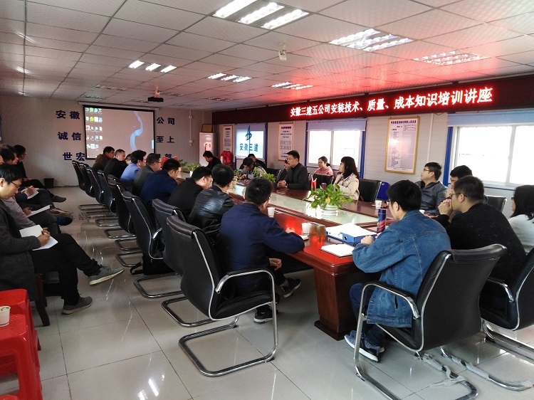 五公司經理左從義在培訓會上指出此次培訓工作不是走馬觀花式的觀摩,而是真正細致入微式的學習,他要求各位參培人員在培訓期間要認真學、認真聽、認真記,不僅學習、了解安裝業(yè)務知識,更要快速掌握安裝成本管控方面工作,適應公司綜合管理新要求,為今后更好的開展相關業(yè)務打好基礎。