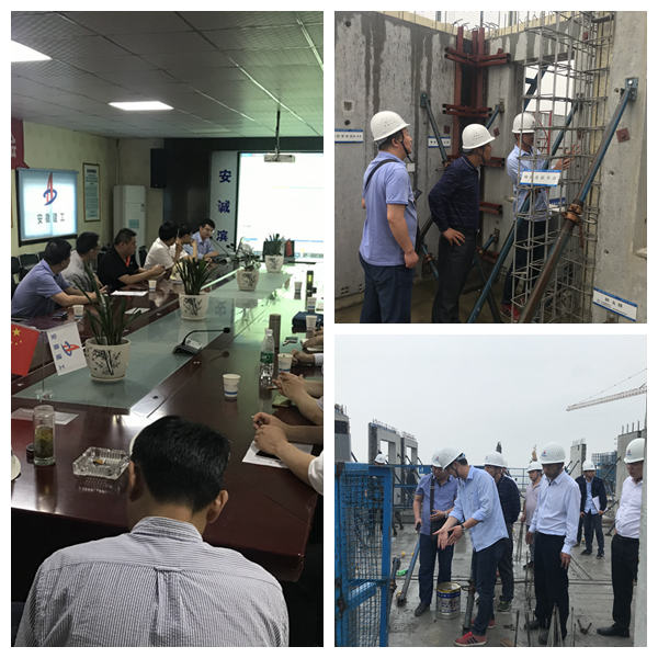5月15日下午,鳳陽縣城鄉(xiāng)建設(shè)局副局長王興茂帶領(lǐng)城鄉(xiāng)建設(shè)局、重點(diǎn)局相關(guān)人員以及萬?;▓@裝配式項(xiàng)目建設(shè)單位、監(jiān)理單位、構(gòu)件生產(chǎn)單位一行,前往濱湖沁園三標(biāo)段項(xiàng)目觀摩交流。王興茂稱贊:“安徽三建在裝配式工程施工領(lǐng)域,雖然起步晚,但步子邁的快,進(jìn)步巨大”。省建設(shè)工程質(zhì)量安全監(jiān)督總站、合肥市質(zhì)量安全監(jiān)督站相關(guān)負(fù)責(zé)人陪同。