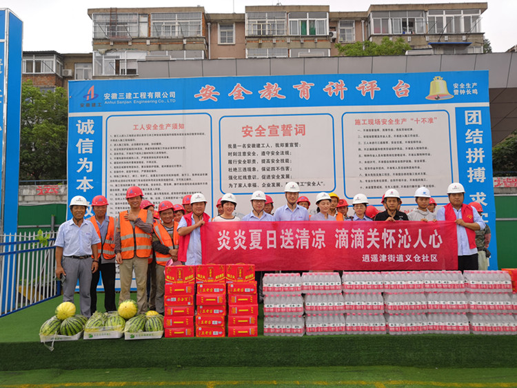 烈日炎炎,高溫酷暑,在領(lǐng)到防暑降溫用品后,項目施工工人員喜悅的笑容帶走了身體上的燥熱和疲憊。任鐘明表示,平時工作中,合肥三中綜合藝術(shù)樓項目能積極配合街道各項工作,為推進社區(qū)文明創(chuàng)建工作扎實有序地做出了榜樣,今后的工作中,希望項目部再接再厲,繼續(xù)支持街道各項工作。