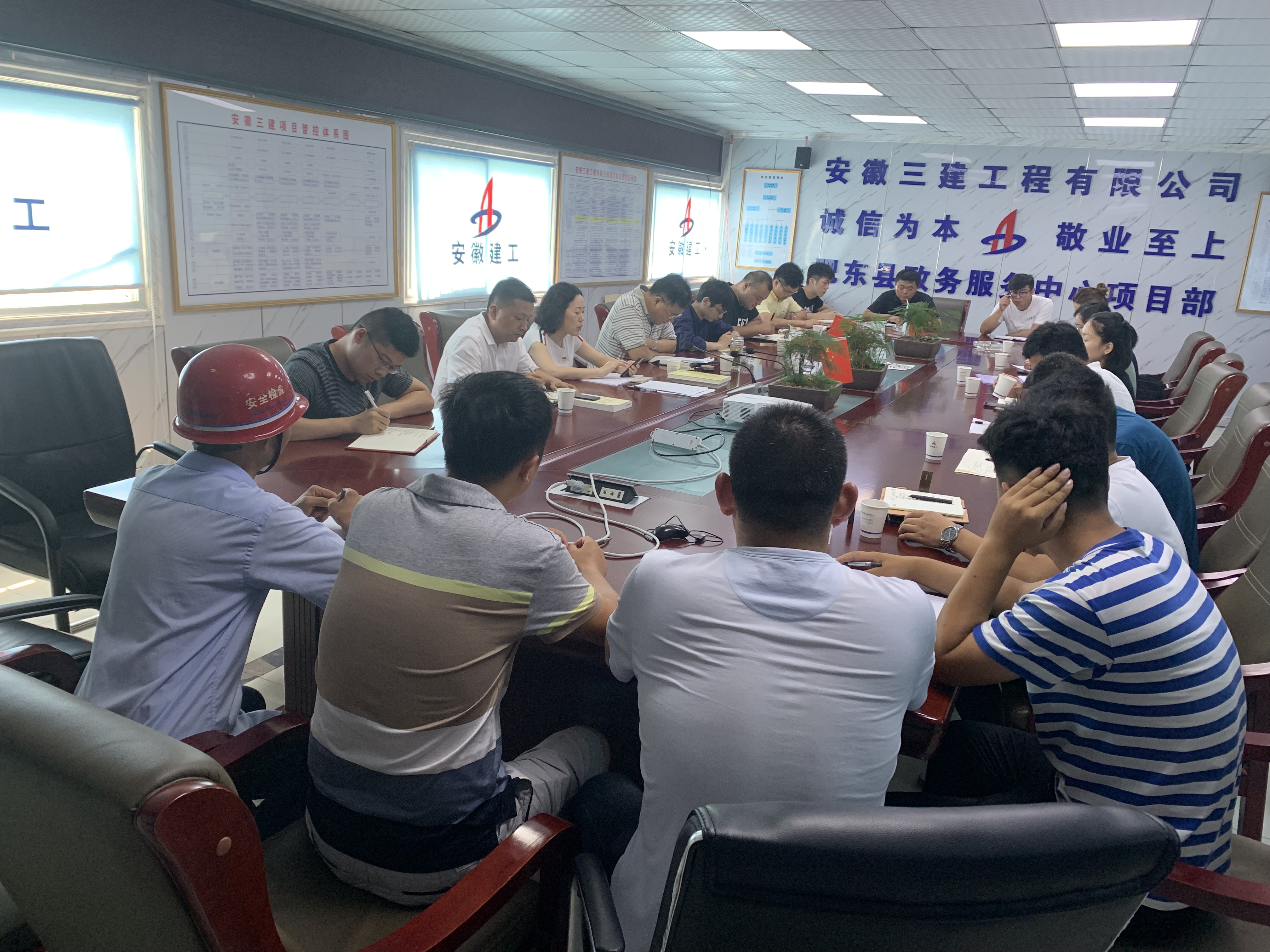 7月28日上午,高溫炙烤,裝飾公司“不忘初心、牢記使命”主題教育學(xué)習(xí)及現(xiàn)場調(diào)研座談會在肥東政務(wù)服務(wù)中心外裝飾項(xiàng)目部開展,裝飾公司全體黨員、肥東政務(wù)服務(wù)中心外裝飾項(xiàng)目人員參加了會議。