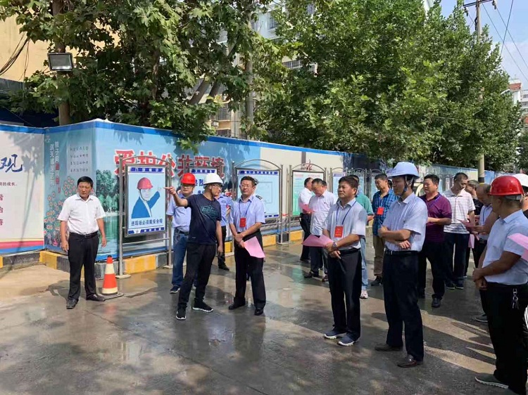 王衍山一行深入施工現(xiàn)場,詳細(xì)詢問并查看一線施工情況。項目負(fù)責(zé)人杜學(xué)剛向調(diào)研組一行詳細(xì)介紹了項目安全生產(chǎn)管理措施、經(jīng)驗、揚塵治理防治措施、實測實量管控情況等方面內(nèi)容。