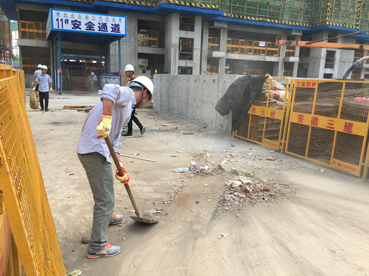 此次黨員義務(wù)勞動(dòng)的主要任務(wù)是清掃項(xiàng)目部11棟與16棟樓之間等區(qū)域的的墻面、地面清掃,定型化材料整理。盡管太陽毒辣、天氣炎熱,但大家在項(xiàng)目黨支黨員的帶領(lǐng)下,全體管理人員熱情高漲,大家自動(dòng)分工,相互協(xié)作,積極投身到熱火朝天的義務(wù)勞動(dòng)行動(dòng)中,勞動(dòng)的身影在項(xiàng)目上成了一道亮麗的風(fēng)景線。