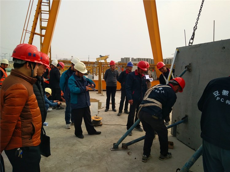 黃麓師范學(xué)校項目中包含部分產(chǎn)業(yè)化施工,目前,該項目中教師公租房以及食堂、培訓(xùn)樓施工已全面進入產(chǎn)業(yè)化施工階段。為了提升項目裝配式建筑施工生產(chǎn)進度,響應(yīng)集團勞動競賽號召,12月16日上午,黃麓師范學(xué)校改擴建二標(biāo)項目舉辦首次裝配式關(guān)鍵崗位施工人員考試??荚囋诎不战üそㄖI(yè)公司舉行。安徽三建公司副總經(jīng)理、安徽建工建筑工業(yè)公司總經(jīng)理王興明,技術(shù)質(zhì)量部主任劉春國,安徽恒信建設(shè)工程管理有限公司總監(jiān)梁德江負責(zé)監(jiān)考,合肥市住建局及巢湖市質(zhì)檢站等相關(guān)產(chǎn)業(yè)化負責(zé)人專程來到現(xiàn)場觀摩指導(dǎo)。