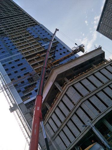150噸巨塔平穩(wěn)著陸 超高層項(xiàng)目建設(shè)再上新臺(tái)階