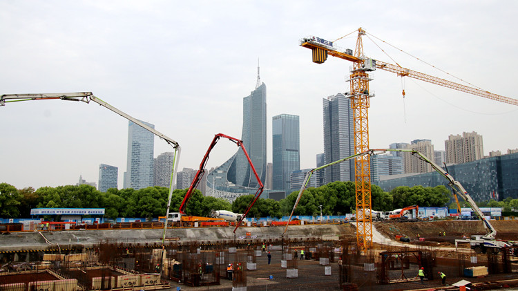 安徽三建合肥中心圖書館項(xiàng)目大體積混凝土澆筑圓滿收泵