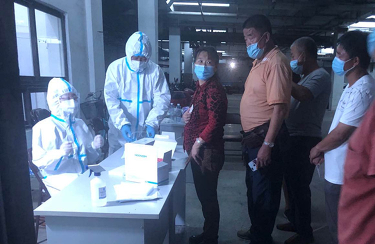 為了確保生產(chǎn)經(jīng)營(yíng)和防疫工作兩不誤,金連領(lǐng)地項(xiàng)目經(jīng)理主動(dòng)與街道溝通,確認(rèn)檢測(cè)時(shí)間,合理分組安排人員檢測(cè),減少對(duì)項(xiàng)目施工的影響。為了避免人員聚集。晚間6點(diǎn),社區(qū)居民全部檢測(cè)完畢以后,項(xiàng)目經(jīng)理將15名管理人員和160名工人分為三組,由管理人員分時(shí)段帶領(lǐng)工人前往社區(qū)指定地點(diǎn)進(jìn)行核酸檢測(cè)。為了減輕社區(qū)和防疫工作者的壓力,每隊(duì)的小隊(duì)長(zhǎng)預(yù)先對(duì)所有工人進(jìn)行體溫檢測(cè),自我篩查是否有體溫異常的工人,提前指導(dǎo)工人做好信息登記工作,減輕醫(yī)護(hù)人員的工作量,加快核算檢測(cè)工作進(jìn)展。
