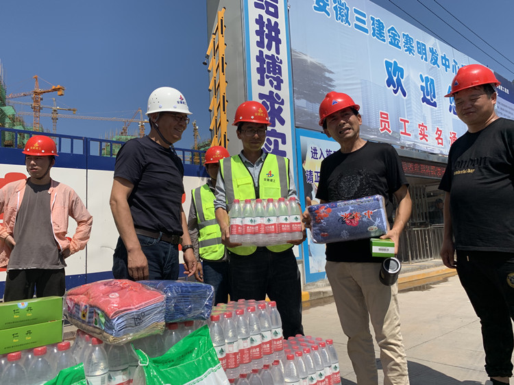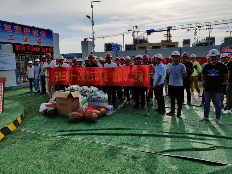 梅雨一去,酷暑即來(lái)。近日來(lái)驕陽(yáng)似火,氣溫直線上升。為進(jìn)一步貫徹落實(shí)防暑降溫工作相關(guān)要求,切實(shí)維護(hù)職工安全健康權(quán)益,8月1日-5日,安徽三建十一公司領(lǐng)導(dǎo)班子紛紛前往項(xiàng)目一線開展“送清涼”活動(dòng),為奮戰(zhàn)在高溫一線的干部職工送去清涼油、風(fēng)油精、綠豆、礦泉水等防暑降溫用品,更送去了真摯的關(guān)懷。
