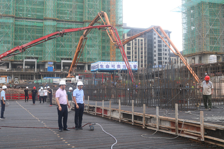 為推動分公司項目部之間的內(nèi)部交流學(xué)習(xí),進一步貫徹落實“戰(zhàn)疫情、搶工期、保目標(biāo)、促超產(chǎn)”勞動競賽,洽逢金寨明發(fā)超高層項目進行大體積混凝土澆筑之際,8月11日上午,十一公司組織領(lǐng)導(dǎo)班子成員、各科室負(fù)責(zé)人、項目經(jīng)理及技術(shù)負(fù)責(zé)共計30余人前往金寨明發(fā)超高層項目觀摩學(xué)習(xí)大體積混凝土澆筑工藝。