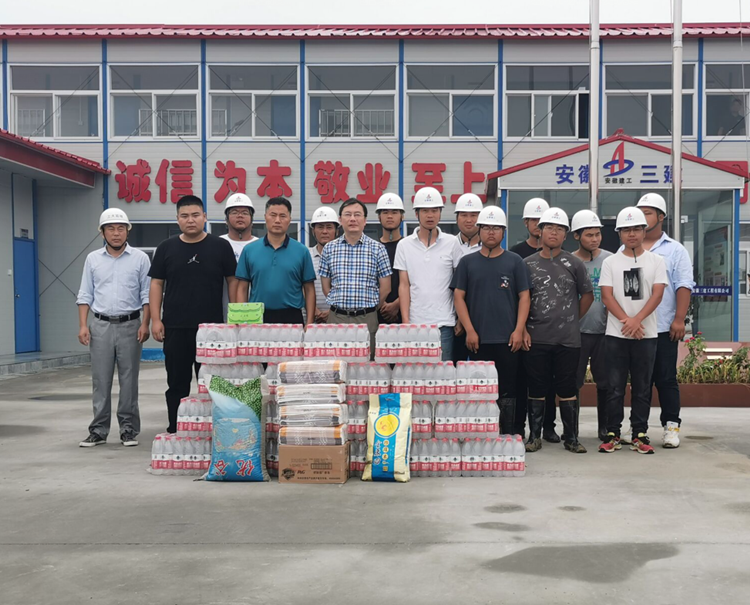 2020年8月20日,頂著炎炎烈日,臨泉廬陽(yáng)現(xiàn)代產(chǎn)業(yè)園管委會(huì)前往安徽三建承建的臨泉欣榮農(nóng)民返鄉(xiāng)創(chuàng)新創(chuàng)業(yè)基地項(xiàng)目開(kāi)展”夏季送清涼“活動(dòng)。