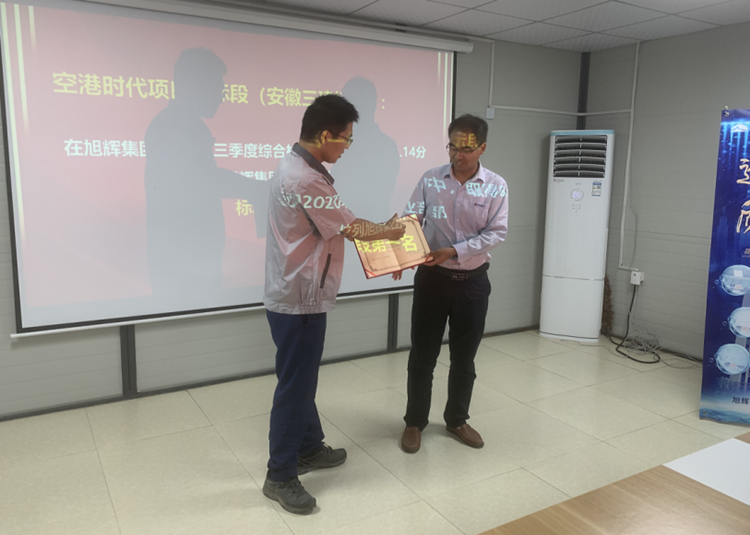 近期,旭輝集團(tuán)2020年第三季度綜合檢查評比結(jié)果出爐,九公司旭輝·空港時(shí)代·曦園一標(biāo)段項(xiàng)目獲得鄭州地區(qū)第一名。9月18日,旭輝集團(tuán)鄭州事業(yè)部在空港時(shí)代項(xiàng)目部會(huì)議室召開了鄭州地區(qū)評比總結(jié)會(huì)議,旭輝集團(tuán)鄭州事業(yè)部工程總監(jiān)許成樹在會(huì)上為空港時(shí)代·曦園一標(biāo)段項(xiàng)目部頒發(fā)了榮譽(yù)證書。