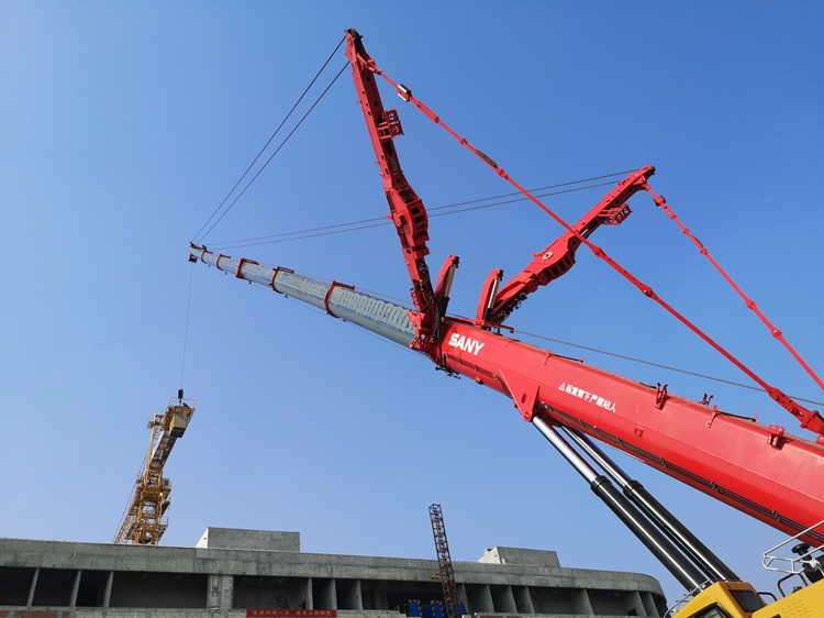為了確保安全拆除,項目部和設(shè)備租賃公司密切配合,多次現(xiàn)場勘探,科學(xué)論證拆除方案,決定使用500噸吊車拆除。方案經(jīng)過上報審批、質(zhì)監(jiān)站等部門審核確認(rèn)。為確保拆除作業(yè)順利完成,項目部和設(shè)備公司安排吊車提前一天抵達(dá)項目現(xiàn)場,設(shè)備租賃公司派出了兩個班組,機上、機下配合組裝和調(diào)試工作,為順利拆除作業(yè)打下良好基礎(chǔ)。