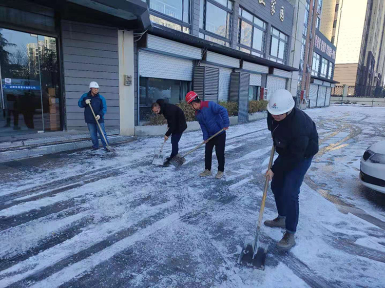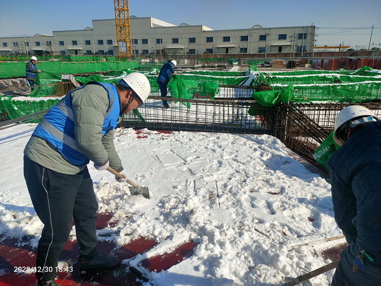 12月29日,安徽省經(jīng)歷了一場強(qiáng)降雪天氣,地面上堆起了皚皚白雪。為保障安全生產(chǎn)和員工的出行安全,12月30日,十二公司滁州時代名邸項目部、滁州東菱項目部和肥東振興EPC項目部積極組織開展鏟雪除冰活動。室外的溫度很低,路面的積雪被凍的得很嚴(yán)實,項目管理人員不顧天寒路滑,有的鏟雪,有的掃雪,有的拋灑融雪劑,齊心協(xié)力掃雪除冰。經(jīng)過幾個小時的努力,路面積雪被清理完畢,道路也已打掃干凈,工作面積雪被清除,為車輛及職工的安全出行,以及項目施工提供了保障。