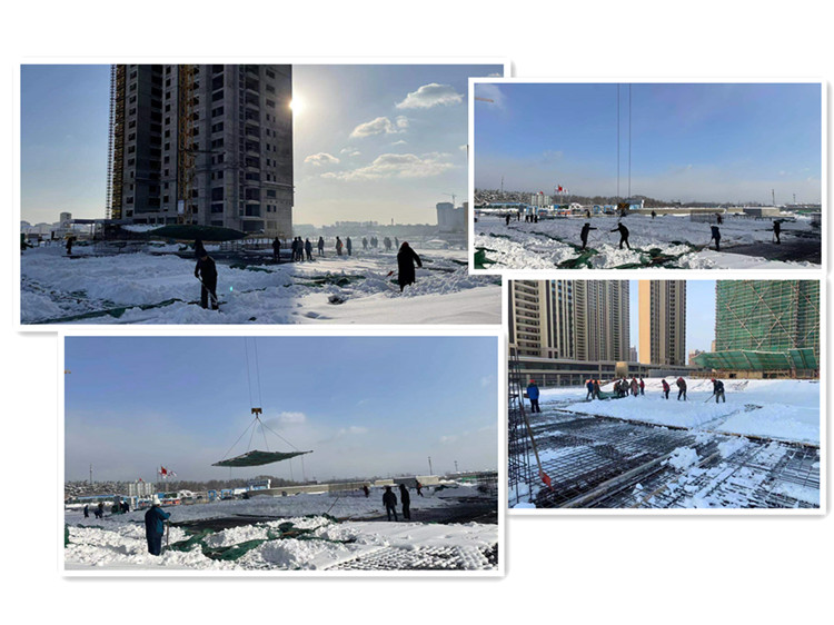 對積雪較小,溫度較低的濟南地區(qū),瀾湖郡小學、君逸府和未來城A5項目及時調(diào)整施工計劃,三項目迅速采購保溫加熱物資共計棉被2600件,爐子40個,焦炭12噸,五彩布9000平,溫度計230個,采取物理加熱保溫,夜間加班加點的方式,確保施工質(zhì)量和施工進度,層板與層板間燒炭火加熱,層板覆蓋棉被,四周圍滿五彩布保溫,確保溫度符合澆筑砼的標準,嚴把質(zhì)量關。