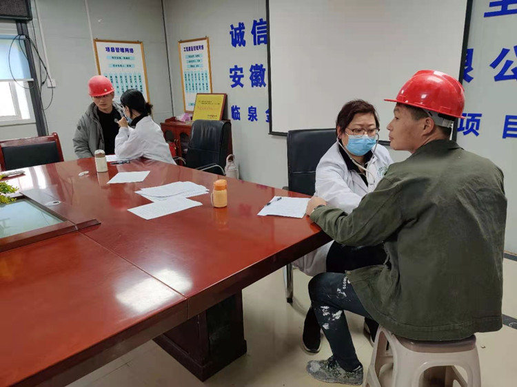為全面貫徹落實安徽三建十二屆二次職代會精神,展現(xiàn)公司對項目生產(chǎn)一線工人的人文關(guān)懷,保障工人的身體健康,3月18日,十一公司特邀請合肥市蕪湖路社區(qū)醫(yī)院醫(yī)務(wù)人員前往臨泉金科城及臨泉集美云璟項目,為全體一線工人進行健康體檢。