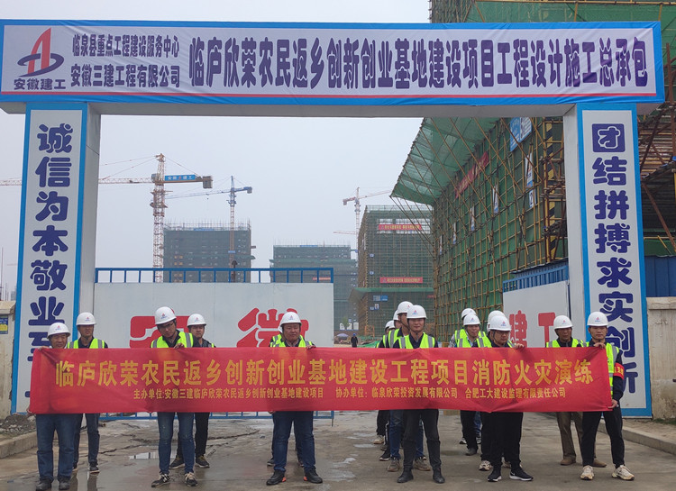 2021年4月15日,在第六個(gè)全民國家安全教育日來臨之際,為加強(qiáng)項(xiàng)目人員的安全意識(shí),安徽三建八公司臨廬欣榮農(nóng)民返鄉(xiāng)創(chuàng)新創(chuàng)業(yè)基地建設(shè)項(xiàng)目在施工現(xiàn)場(chǎng)組織開展了火災(zāi)消防演練活動(dòng)。臨廬管委會(huì)規(guī)劃建設(shè)局副局長(zhǎng)孫志勇等相關(guān)單位負(fù)責(zé)人參加了此次活動(dòng)。