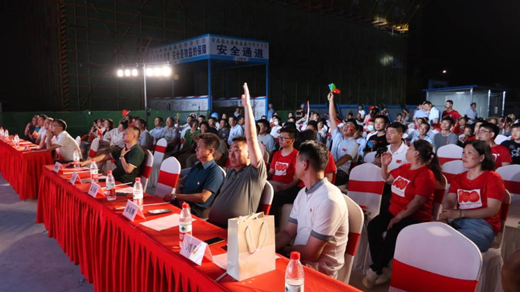 “沒有共產(chǎn)黨,就沒有新中國……”6月30日晚,剛剛結(jié)束了一天火熱建設(shè)的臨廬欣榮EPC項目工地上,傳來了嘹亮的歌聲,吸引了過往的路人,這是安徽三建八公司、工程建設(shè)研究院聯(lián)合舉辦的“頌歌獻給黨,勞動最光榮,紅歌進一線,黨史大競賽”活動。臨廬產(chǎn)業(yè)園管委會副主任楊擁軍、曹曙光以及相關(guān)部門、監(jiān)理方等領(lǐng)導(dǎo)出席了活動。八公司、工程研究院主要負責(zé)人、部分黨員、臨泉聯(lián)合黨支部及工友近200余人參加了活動。