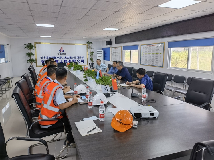 8月25日上午,公司黨委委員、副總經(jīng)理張斌到長豐縣雙墩鎮(zhèn)水岸人家安置小區(qū)(二期B區(qū)塊)項目開展調(diào)研工作,工程管理部、十公司、華力勞務公司負責人及項目相關負責人參加調(diào)研。