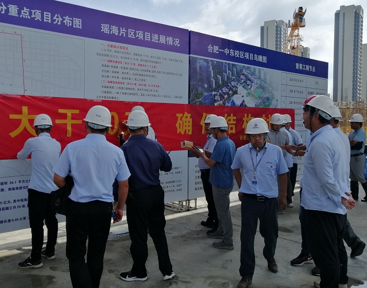 為了確保10月30日結(jié)構(gòu)封頂的節(jié)點目標,進一步鼓舞參建職工的斗志和緊迫感,9月20號上午,合肥一中東校區(qū)項目舉行“大干40天,確保結(jié)構(gòu)封頂”誓師大會,項目各參建單位管理人員、監(jiān)理、各施工班組長等近100人參加。