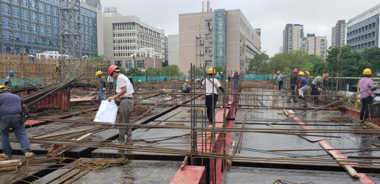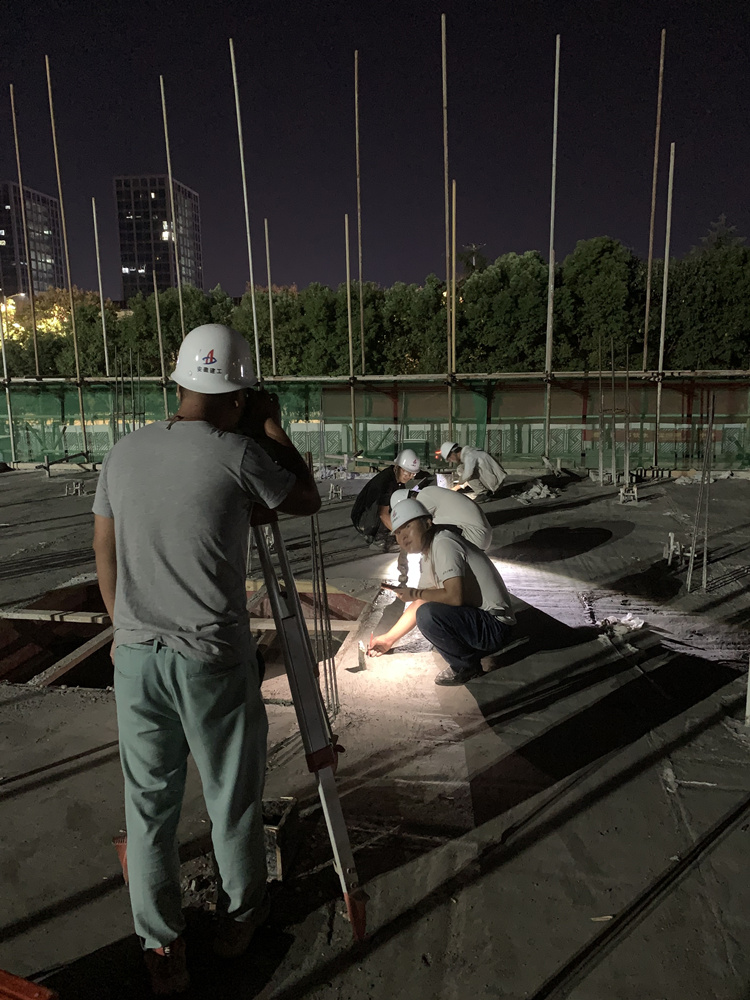 由于25、26兩天大雨影響以及本層為懸挑層導致施工進度滯后,2021年8月29日至30日,蕪湖中醫(yī)院項目鋼筋工工人加班加點頂著炎炎烈日大面積的鋪設(shè)住院樓梁板鋼筋,確保了8月31日完成三層結(jié)構(gòu)混凝土澆筑工作。9月17日,為了硬化現(xiàn)場的一塊場地為施工材料的周轉(zhuǎn)和堆場提供空間,現(xiàn)場管理人員與工人一直工作至凌晨5點,圓滿完成任務(wù),大大減少了因材料堆場周轉(zhuǎn)等問題導致的現(xiàn)場工作開展緩慢的問題,為現(xiàn)場搶工期提供了有力的幫助。標志著現(xiàn)場生產(chǎn)進度將再上一個臺階。9月18日,項目部一天時間里完成了考試樓、住院樓的一層外圍擋土墻砌筑工作,鋼筋與木工緊隨其后完成鋼筋綁扎與支模工作,第二天便完成格構(gòu)柱與壓頂?shù)臐仓ぷ?,為周邊回填土,場地硬化贏得足夠的時間。9月21日中秋佳節(jié),項目部全體員工堅守項目上奮力搶工期節(jié)點。