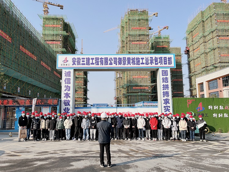11月29日,安徽三建公司御景黃城項目迎來了一批年輕的客人——安徽農(nóng)業(yè)大學(xué)工學(xué)院土木工程學(xué)院三個班近百名學(xué)生。他們在年級老師的帶領(lǐng)下,來到項目施工一線觀摩學(xué)習(xí)。