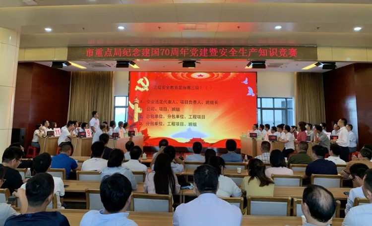 為慶祝中國(guó)共產(chǎn)黨建黨98周年,迎接建國(guó)70周年,深入學(xué)習(xí)貫徹習(xí)近平新時(shí)代中國(guó)特色社會(huì)主義思想和黨的十九大精神,提高全員安全生產(chǎn)意識(shí),6月26日下午,市重點(diǎn)局在中鐵十局三公司舉辦了紀(jì)念建國(guó)七十周年黨建暨安全生產(chǎn)知識(shí)競(jìng)賽,安徽三建八公司市中心圖書(shū)館項(xiàng)目代表隊(duì)喜獲比賽二等獎(jiǎng)。