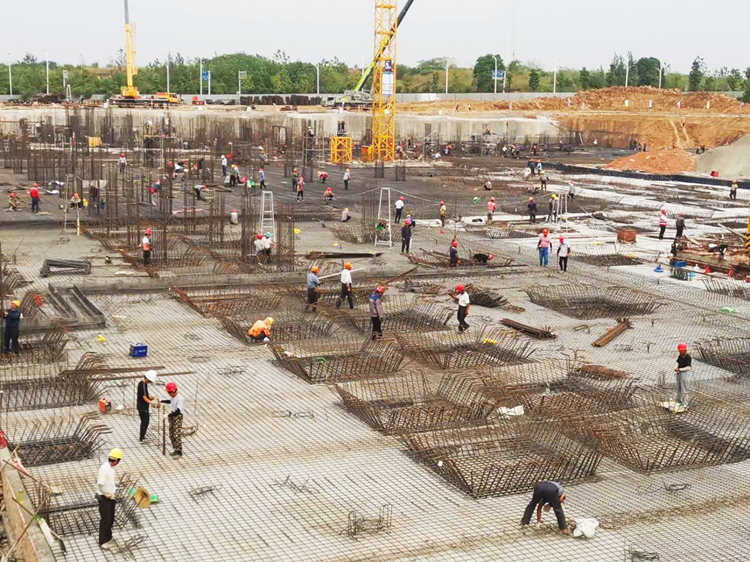 項目部首先遭遇的是史上最長的梅雨季。連續(xù)雨天是基礎(chǔ)施工的天敵。常常剛挖出來的基礎(chǔ),一場急雨過后,積水淤泥遍布。迎難而上是安徽三建人的傳統(tǒng)。憑借多年的施工經(jīng)驗,項目部立即形成了一套應(yīng)對方案:配備了80臺大功率抽水泵,采取挖機配合人工清淤,確保基礎(chǔ)施工成效。小雨搶著干;大雨防積水;白天下雨晚上干,項目部日夜不停開挖,確保了基礎(chǔ)施工進(jìn)度。