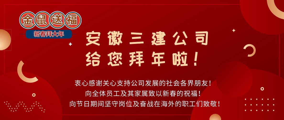 安徽三建公司給您拜年啦! 發(fā)布時間:2020-01-21 來源:黨工部 撰稿人: 瀏覽次數(shù):13966 衷心感謝關(guān)心支持公司發(fā)展的社會各界朋友! 向全體員工及其家屬致以新春的祝福! 向節(jié)日期間堅守崗位及奮戰(zhàn)在海外的職工們致敬!
