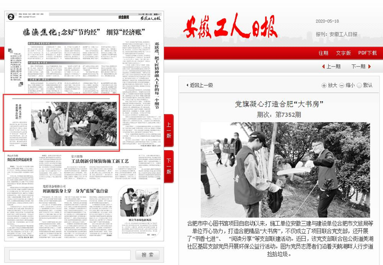 安徽工人日報——黨旗凝心打造合肥“大書房” 發(fā)布時間:2020-05-18 來源:安徽工人日報 撰稿人:李艷麗 瀏覽次數(shù):19165 報道鏈接:http://epaper.xunbaoah.com/index/article/articleinfo?doc_id=3334
